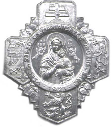 Brno - Všeob. sjezd čs. Mariánských družin 1921. P. Marie Ustavič né pomoci ražebna KARNET-KYSELÝ ŽIŽKOV Al 31x36 mm jehlice