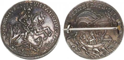Svatojiřská 1/2 Tolarová medaile b.l., sign. C H R (Christian Her man Roth, Kremnice cca 1645-1690) Ag 36 mm se sponou váha 18 ,993 g pozdější práce