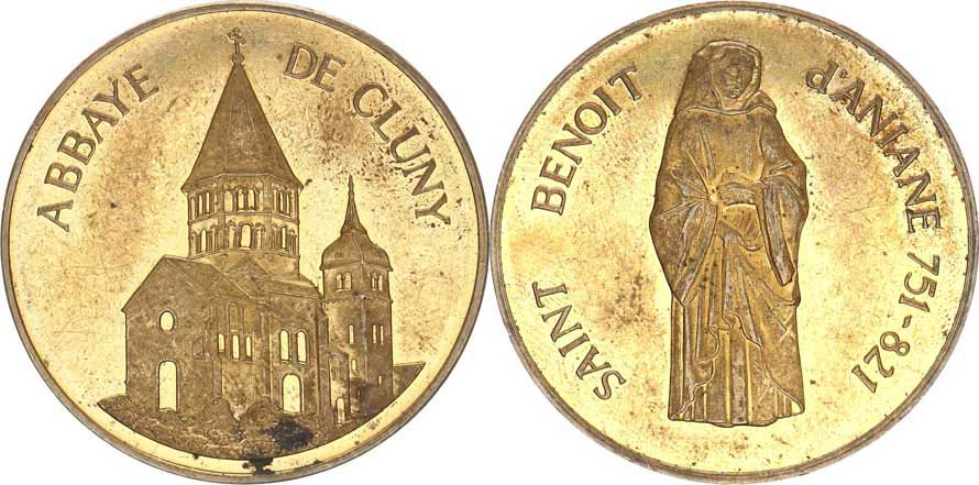 Francie - Cluny opatství, kostel / Svatý Benedikt z Aniane mosaz 38 mm