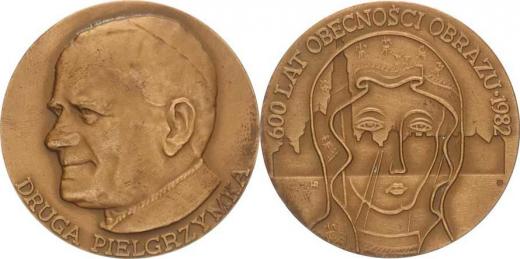 Polsko - Jan Pawel II., Druhá pouť papeže do vlasti, hlava vlevo / 600 let obrazu Madony 1982 (Čenstochova) sign.: HR bronz 70 mm