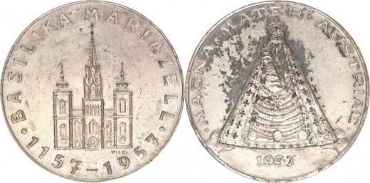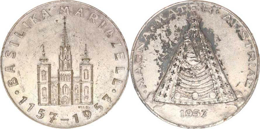 Rakousko - 800.výročí Maria-Zell 1157-1957, MAGNA MATER / basilik a a datace sign.: WILD postř. bronz 33 mm_otřelá