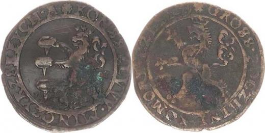 Početní groš komory české b.l.; A: Český lev drží v předních tlap ách tři razidla nad sebou, opis / Český lev, opis Cu 21 mm 2,018 g Polívka: 109 "RRR"_skvr. koroze