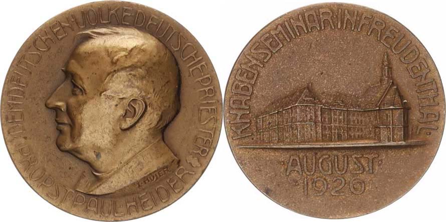 Chlapecký seminář 1926, budova, opis a nápis / probošt Paul Heide r, hlava vlevo, opis sign.: L. HUJER bronz 35 mm 19,25 g