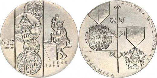 650 rokov 1328-1978, Pregéř a mince / Štátná mincovňa N.P. Kremni ca, Dvě vyznamenání sign.: A. P. (Andrej Peter) postř. b ronz 40 mm 32,39 g