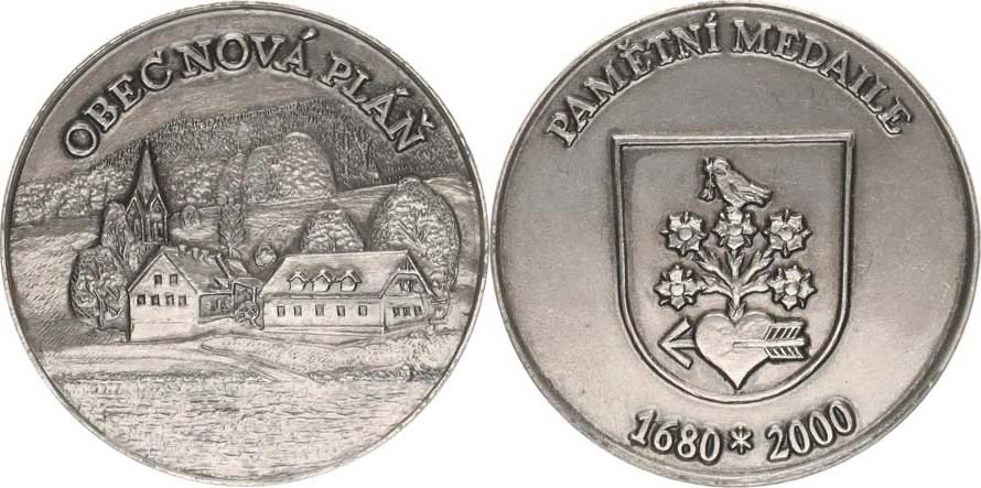 Pamětní medaile 1680 - 2000, Znak obce, opis / Pohled na obec, op is francouzské stříbro 35,3 mm návrh: Jan Štorkán (vydáno 300 ks) plastová etue +certifikát