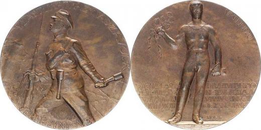 VII. slet 1920, sportovec s lipovou ratolestí a čtyřřádk. nápis / Voják s puškou a granátem, opis bronz 50 mm 55,55 g BO. 117a (pouze 608 ks)