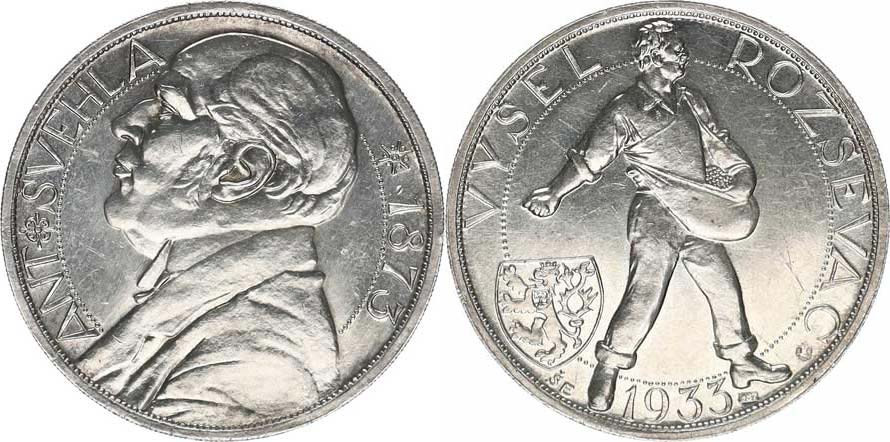 Antonín Švehla, 1873 / Vyšel rozsévač 1933 Ag 30 mm 10,029 g Nov. Vc