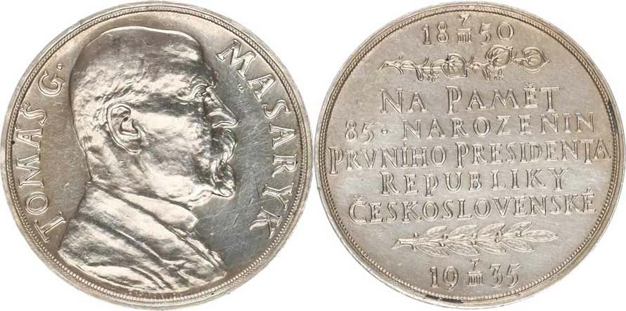T.G.Masaryk, 85.narozeniny 1935 Ag 32 mm lesklá 14,791 g