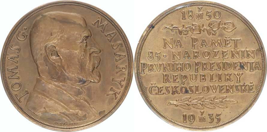 T.G.Masaryk, 85. narozeniny 1935 bronz 50 mm Floss 45 b