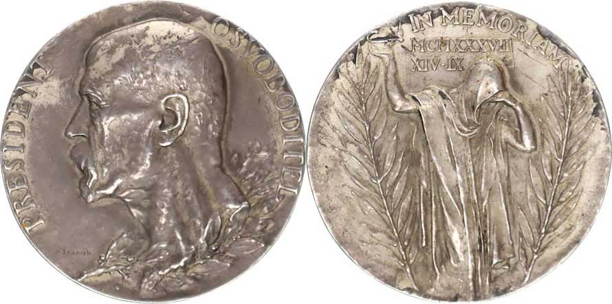T.G.Masaryk, IN MEMORIAM 1937 Ag 50 mm 54,90 g Fl. 54c; Nov1.136a +orig, kulatá etue_patina, tém.