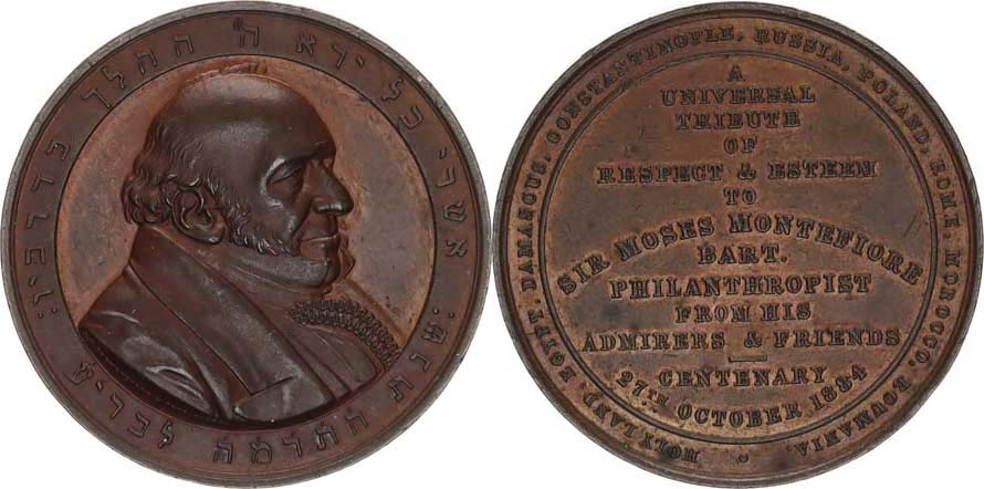 Sir Moses Montefiore, poprsí zprava / 100. výročí narození 27.X. 1884, nápisy raž.: Loewenstark & Sons London Cu 40 mm "RR"