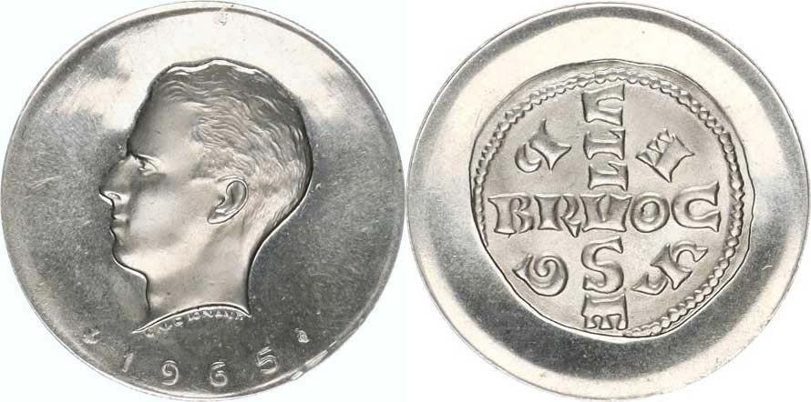Baudouin I. 1965, hlava krále zleva, datace / 1000 let ražení min cí 965-1965, replika denáru Ag 835 10,39 g Morin M15