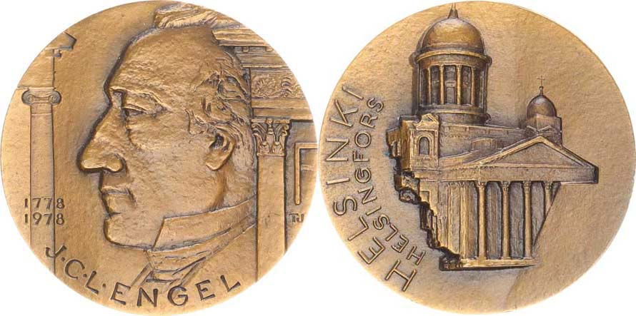 J. C. L. Engel 1778-1978, portrét z profilu zleva, po stranách ió nský a korintský sloup, datace a opis / Helsinská katedrála, opis Helsinki - Helsingfors sign.: TJ masivní bronz 40 mm 49 g