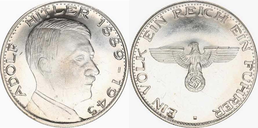 Adolf Hitler 1889-1945, hlava zprava / EIN VOLK EIN....... Ag ? 36 mm 16,02 g