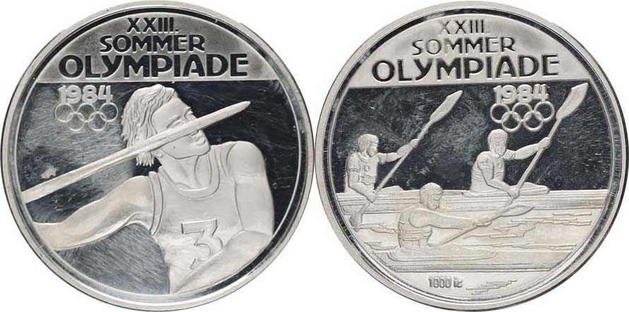 XXIII. letní olympijské hry, oštěpář / kanoisté Ag 1000/1000 36 mm 15 g kapsle
