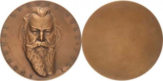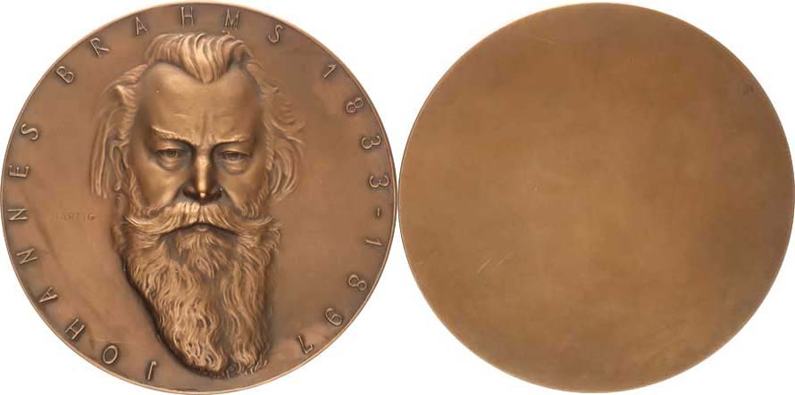 Johannes Brahms 1833 - 1897, portrét en face, opis sign:: A. H ARTIG bronz 75,4 mm 167,10 g