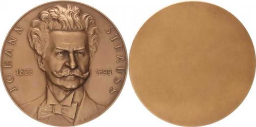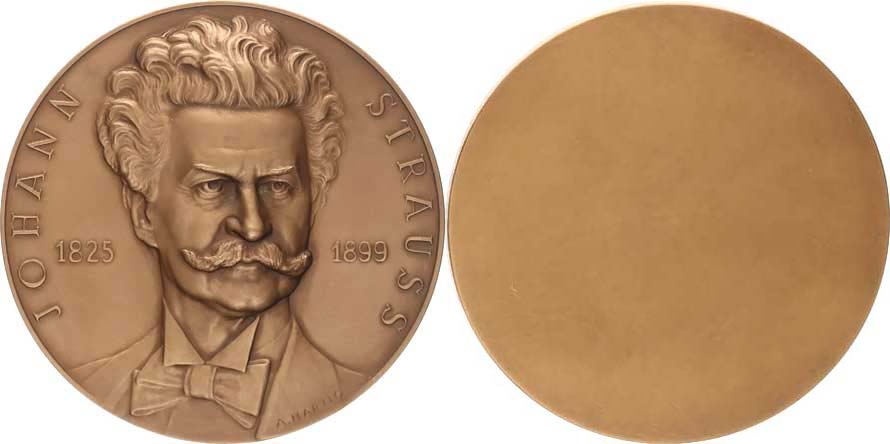 Johann Strauss 1825 - 1899, portrét mírně zprava, opis sign. : A. HARTIG bronz 75,4 mm 170,25 g