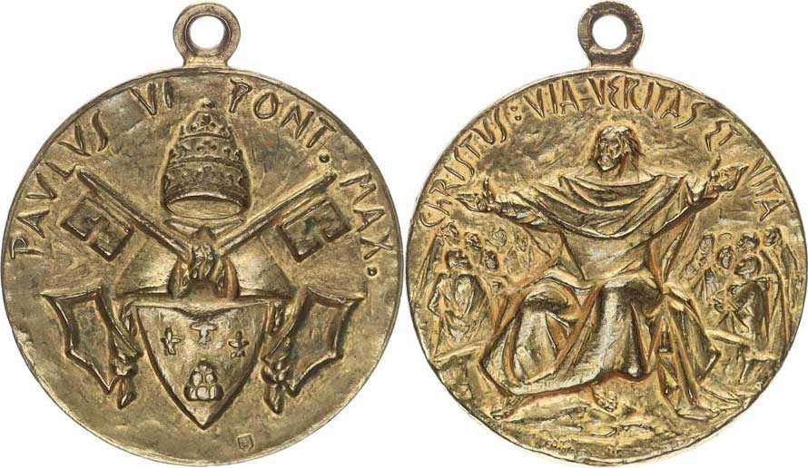 Paulus VI., Pontifikační medaile, Papežský znak / Kázání na hoře CHRISTVS: VIA VERITAS ET VIVA bronz 32 mm pův. ouško