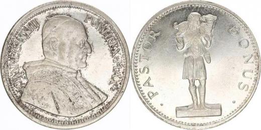 Joannes XXIII., poprsí vpravo, opis / PASTOR BONUS, pastýř stojí na podstavci s beránkem na ramenou bílý kov 36 mm