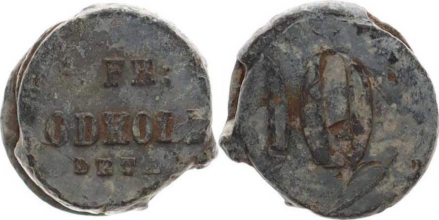 "10" / Fr. Odkol DETA. - mlýnská plomba Pb 6,55 g