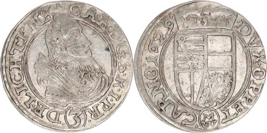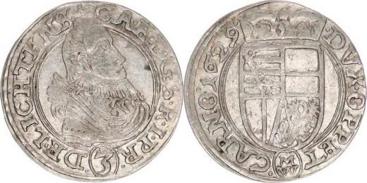 3 kr. 1629 MW SA - , jako 41 ale minc.zn. pod erbem / nominá l pod poprsím "R"