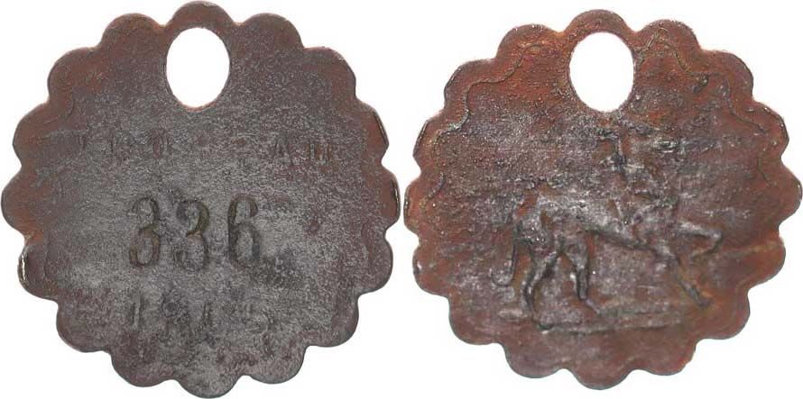 Troppau (Opava) - 1905 (čislo 336), 3řádk. nápis / pes zprava Cu 35x30,5 mm