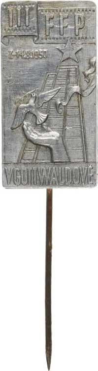 Gottwaldov - "III FFP 7.-14. 8. 1950" (Filmový festival pracujích ) Al 14x27 mm jehlice "R"