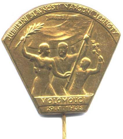 Olomouc - Jubilejní slavnosti Národní jednoty v Olomouci 29.VI. 1935 msazný plech 35x33 mm jehlice