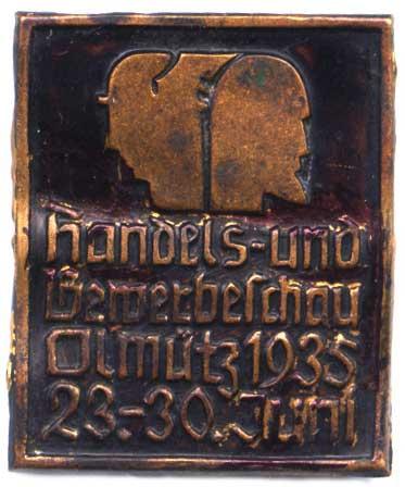 Olomouc - Handels-und / Gewerbeschau / Olmütz 1935 / 23. - 30. Ju ni bronz. patin. plech 30x36 mm sponka
