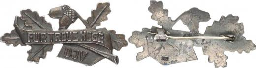 "D J V - Für Treue Hege", na dubové větvičce nápis ve stuze Ag 835 48x25 mm 12,246 g zapín. sponka
