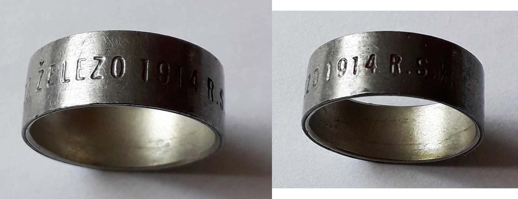 České země - Prsten z akce darování zlata na válečné účely nápis: ZLATO ZA ŹELEZO 1914 R. S. K. ocel 19 mm