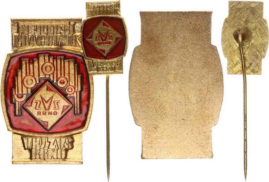 Medaile "Nejlepší pracovník VHJ ZVS Brno" mosaz 27,5x43 mm s č erveným smaltem +klopový odznak 14x22 mm 2 ks orig. etue
