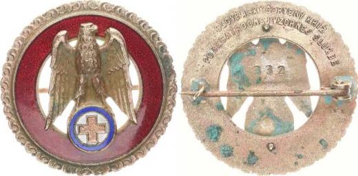 Odznak "Slovenský červený kříž" - Za 5-ročnu vzornu službu, bronzový číslo 332 34 mm červený smalt "RR" _křížek bez smaltu