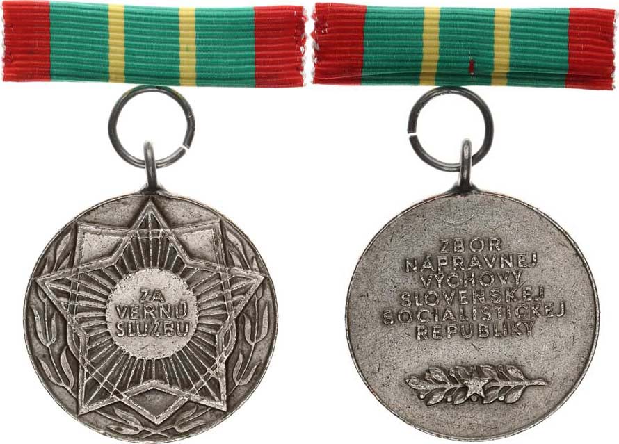 Pamětní medaile "Za vernú službu" / Zbor nápravnej výchovy Sloven skej socialistickej republiky II. stupeň stříbrná + malá st užka_bez stuhy