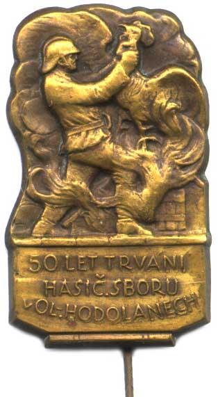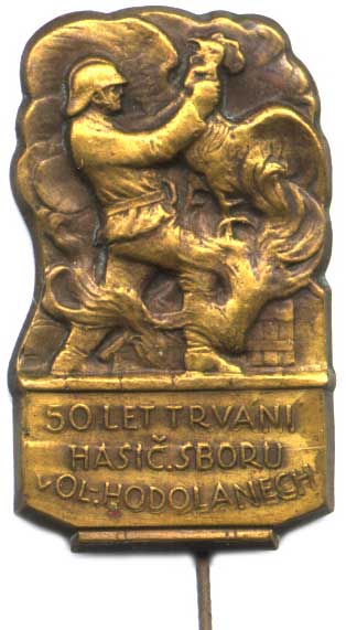 Olomouc - Hodolany, 50 let trvání hasičkého sboru (1932) bronz. plech 25x42 mm jehlice