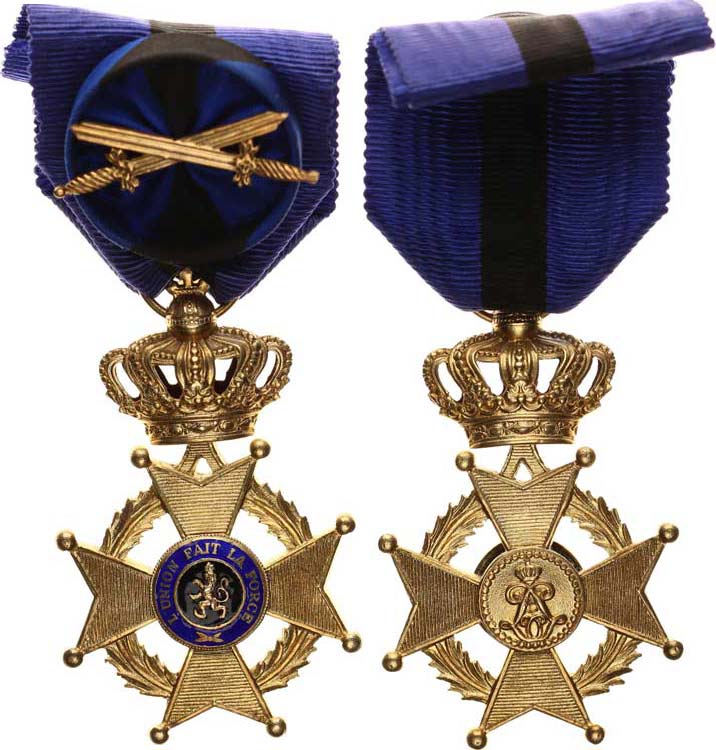 Řád Leopolda II. - IV. třída, důstojník, na stuze rozeta, na ní zkřížené meče stříbro zlacené, smalty nepuncováno