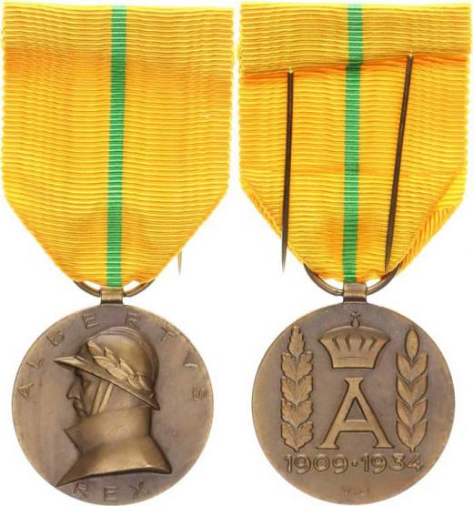 Albert I.(1909-34), Jubilejní pamětní medaile krále, 1934 bronz 32 mm orig. stuha