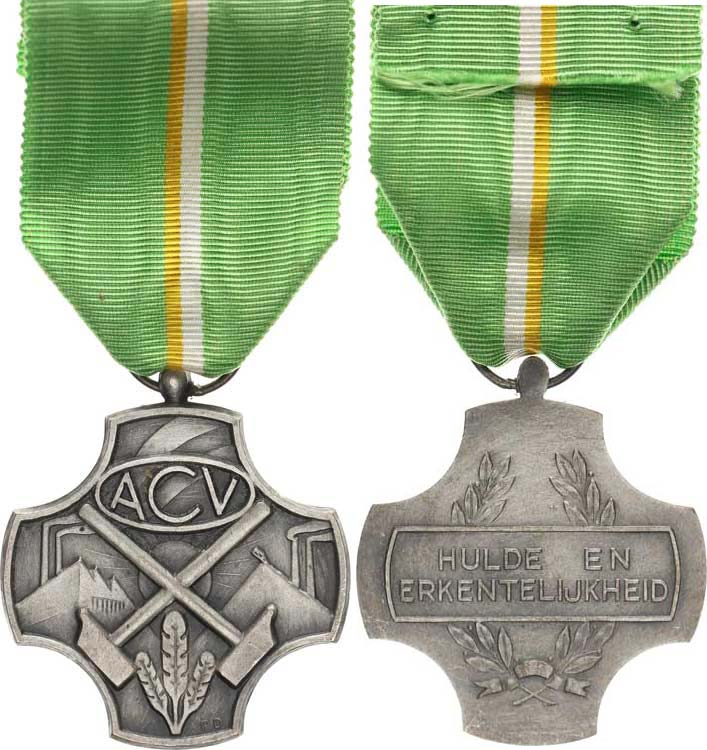Medaile "A C V", Členský odborový svaz za II. světové války v Bel gii II. třída stříbrná 41 mm orig. stuha