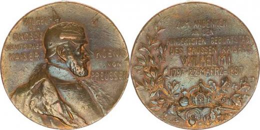 Wilhelm II. - Pamětní medaile "100. výročí narození Wilhelma I. 1 797-1897" bronz 40 mm_odstraněné ouško, hr.