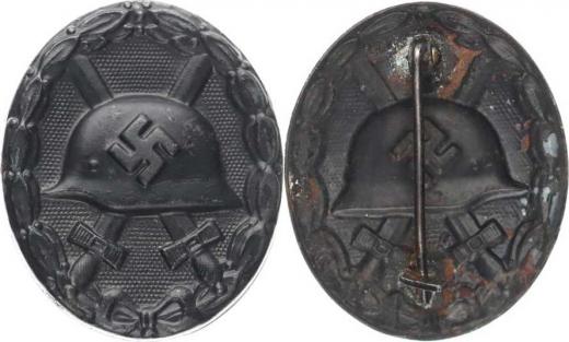 Odznak "Za zranění" 3. stupeň černě lakovaný plech bez značky ražebny orig. spona Hartung 45, Nim. 3846