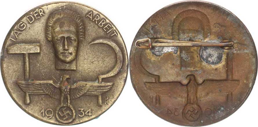 Odznak "Tag der Arbeit - 1934" bez zn. ražebny bronz 36 mm_oprav. zapín. sponka