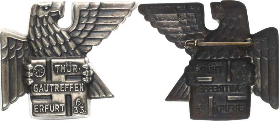 Odznak "Gau Thüringen Erfurt 1933" sběratelská KOPIE patin. plech sponka