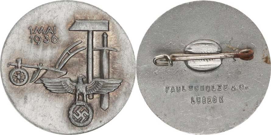 Odznak "1. MAI 1936" ražebna: PAUL SCHULZE & Co LÜBECK Al 35 mm sponka