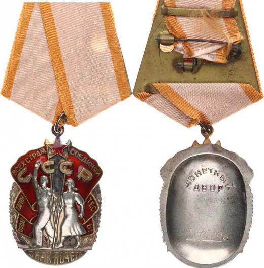Řád "ZNAK POČETA" 4. typ, var. 3 (1953-1988) č. 1146996 znač. MONETNYJ DVOR nepunc. Ag smalty Her. 2.8.3; Barac: 98 3 orig. stuha na kolodce