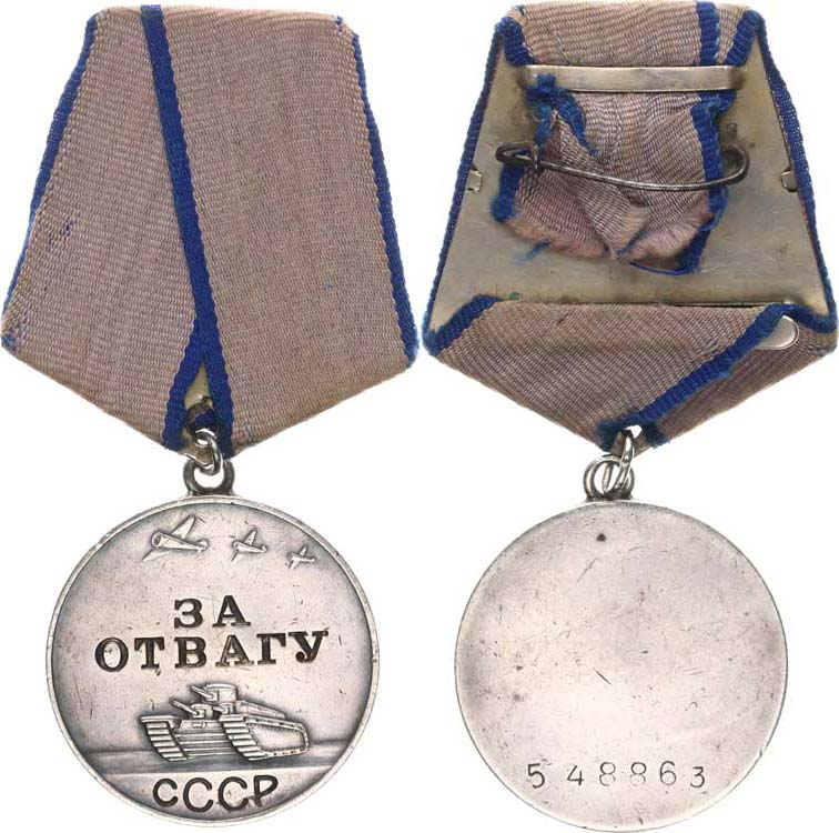 Medaile "Za odvahu" 2. typ (1943) - stuha na kolodce š. 548863 nepunc. Ag - bez červ. emailu, bez zn. mincovny Herf. 3.14.2; Barac. 878_nošená stuha
