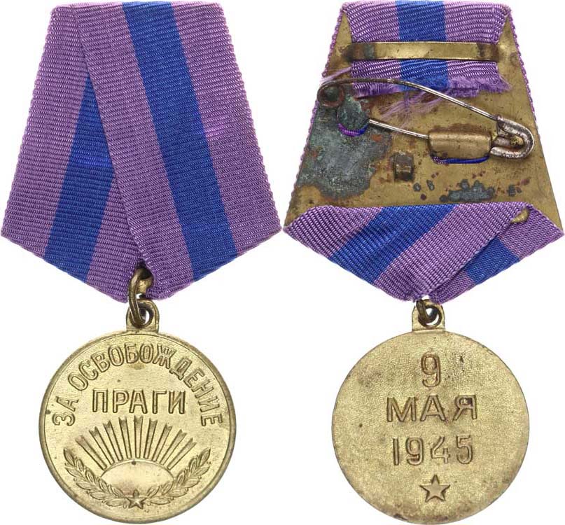 Medaile "Za osvobození Prahy" - var. 2 Herf. 3.38; Barac 919 stuha na kolodce_neorig. zapínání (jehlice)