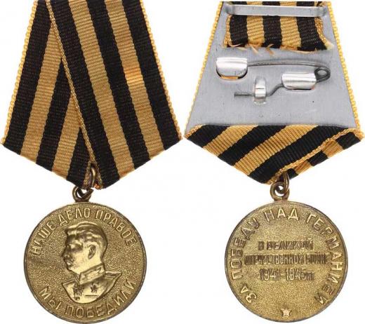 Medaile "Vítězství nad Německem" mosaz, 1. varianta stuha na kolodce Herf.3.39; Barac: 911