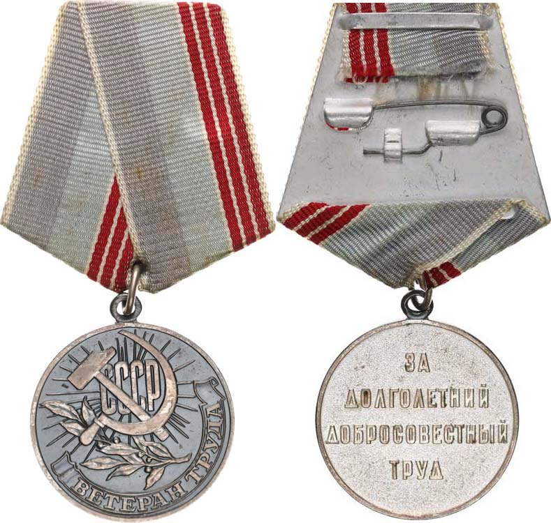 Medaile "Veterán práce", Za dlouholetou svědomitou práci - Typ 1 var. 1 - tombak Av: černěn, Rv: stříbřen stuha na kolodce Herf. 3.4