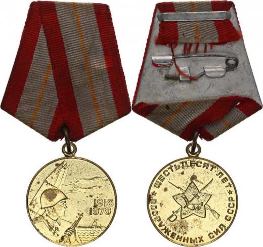 Medaile "60 let ozbrojených sil SSSR" zlatá, stuha na kolodce Her. 3,50