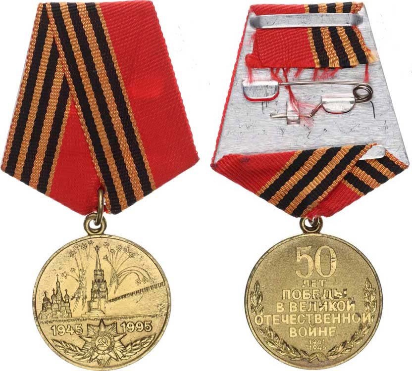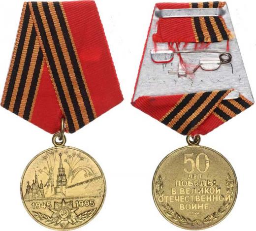Medaile "50 let vítězství ve Velké vlastenecké válce" 1945-1995 zlatá stuha na kolodce